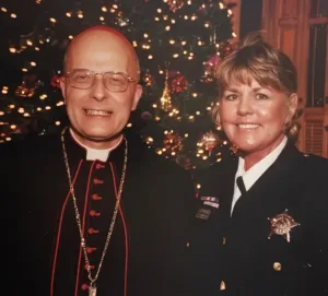 The next person to be honored as a “Catholic Making a Difference…” is Christine Kolman, retired Captain of the Chicago Police Department and independent security consultant. Over a remarkable forty-year career, Chris served in narcotics, child pornography investigations, and undercover work before rising through the ranks to District Commander. She now volunteers her expertise to safeguard the children of St. Mary of the Angels Parish in Chicago.